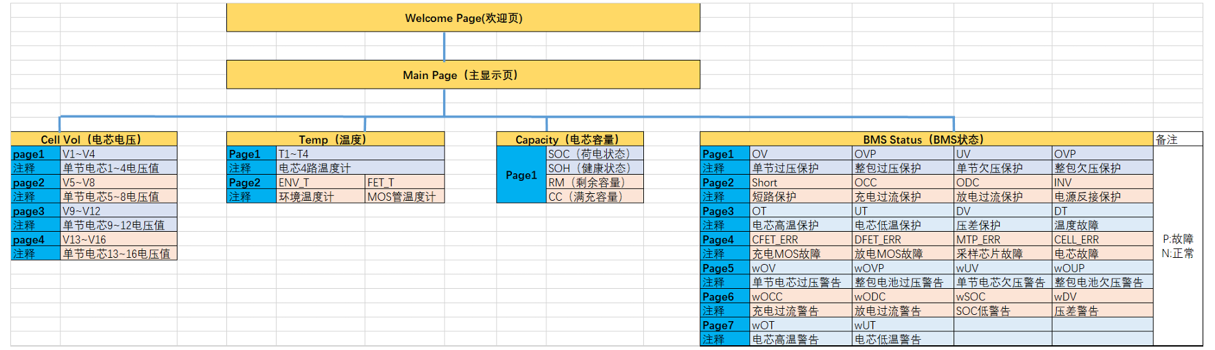 LCD在使用过程中,分为3级界面,具体功能含义如下图